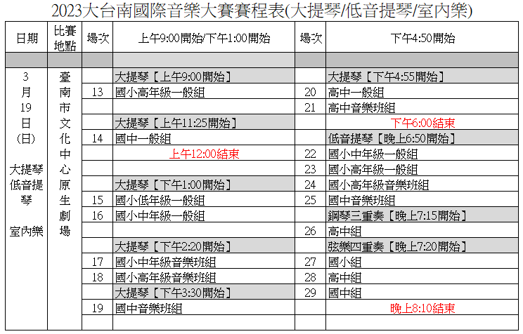 2023大台南國際音樂大賽賽程表(大提琴/低音提琴/室內樂)