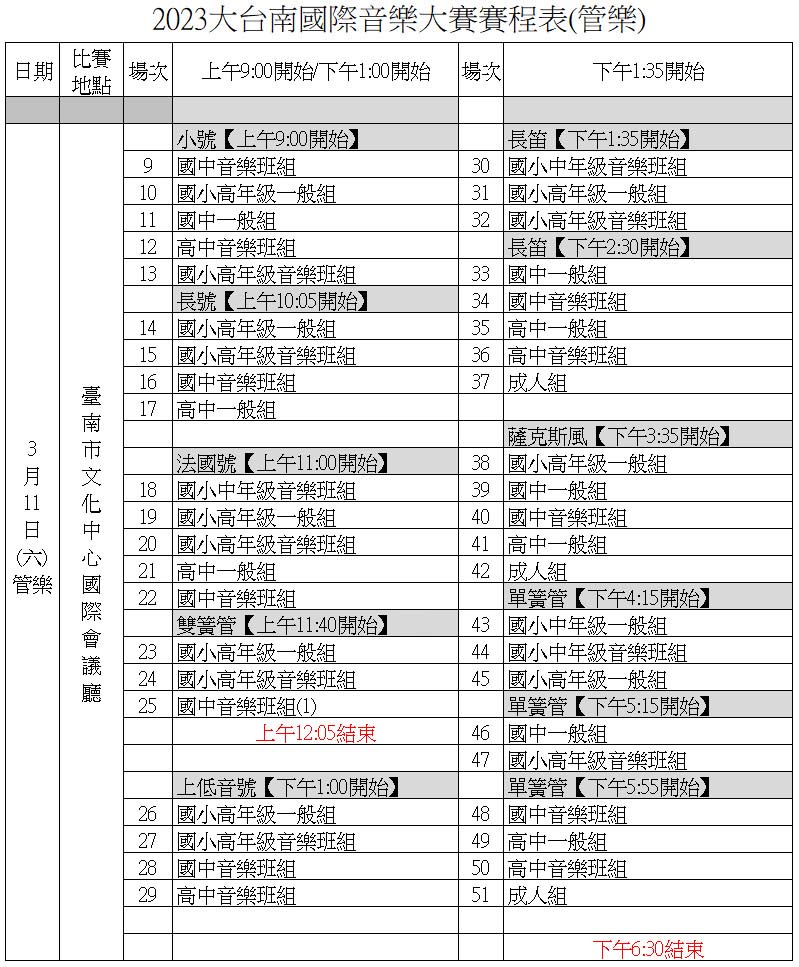 2023大台南國際音樂大賽賽程表(管樂)